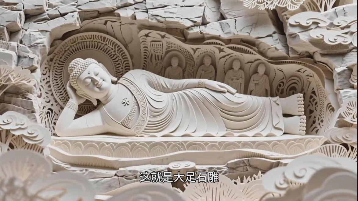 在教师组(AI数字创意赛道)中,语言智能学院(通识教育学院)王甍老师和谭燕老师合作的作品 《AI立体纸雕动画——大足石雕》 荣获一等奖。该作品深度融合人工智能技术与传统纸雕工艺,对大足石刻这一世界文化遗产进行动态化、立体化演绎,是学院推动“数智人文”融合发展的代表性成果,彰显了教师在跨学科创新与实践教学方面的领先水平。