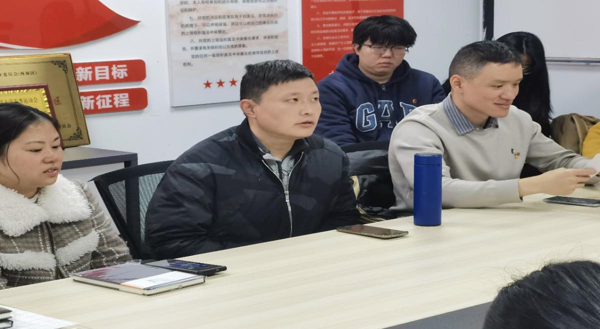 接着,向蓉同志为两位新同志提出了几点希望。一、筑牢思想之魂。作为一名预备党员,要做到思想上入党,思想上、行动上要始终同党中央保持高度一致,要坚定信仰、永不叛党。二、扛起责任之担。党员,不仅仅是一个荣誉,更是一份责任与使命。作为党员,要发挥先锋模范作用,无论是学习、科研、实践、生活等方面,都要为其他同学树立榜样。三、严守纪律之规。纪律是党员的生命线,要做好批评与自我批评,保持党员纯洁性。