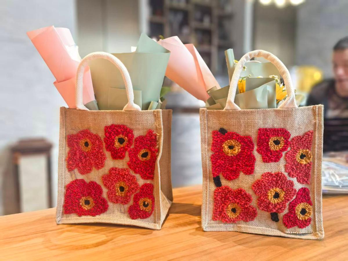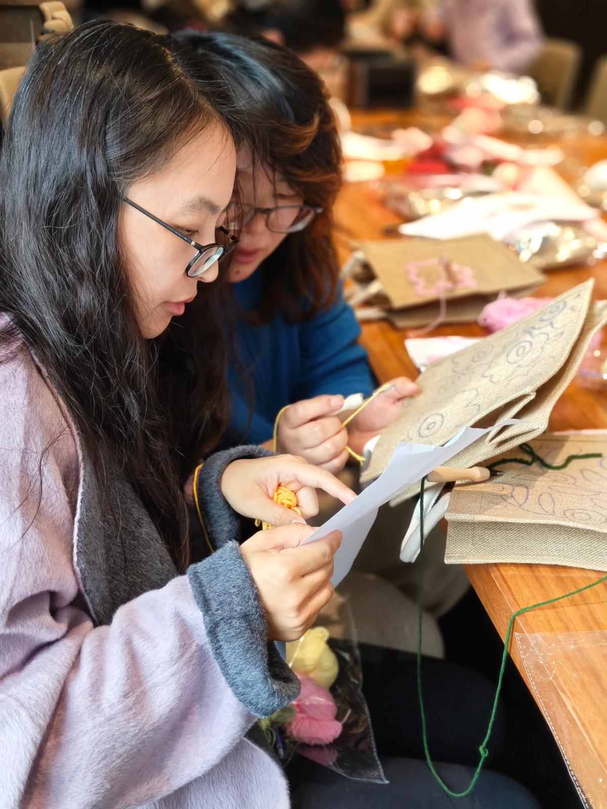 活动现场暖意融融、欢声笑语不断。学院工会为大家准备了色彩丰富的绣线、质感柔软的包包底材与全套戳戳绣工具,老师们围坐在一起,认真学习针法技巧,从起针、走线到配色、填充,一步步耐心创作。无论是女教师,还是男教师,都全神贯注、心灵手巧,指尖翻飞间,将创意与心意绣进包包之中。不少老师们将把自己亲手制作的礼物送给家人。大家相互交流心得、分享技巧,不时为彼此的作品点赞,现场洋溢着轻松愉悦的节日气息。