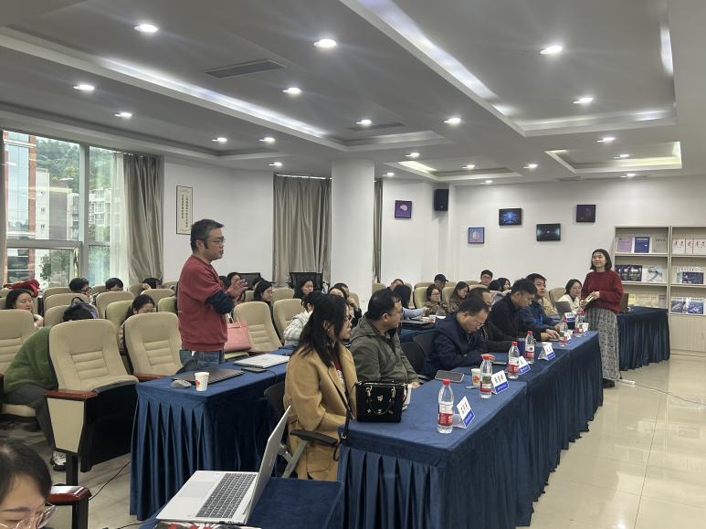 2025年11月7日上午,“国医医理文明互鉴与语言脑健康交叉学科素养提升”专题讲座在语言智能学院(通识教育学院)博文楼401顺利举行。本次活动特邀重庆市九龙坡区中医院魏睿副主任医师、张雪锋主治医师、石燕芳主治医师联袂主讲,学院全体博士教师与研究生共同参与。