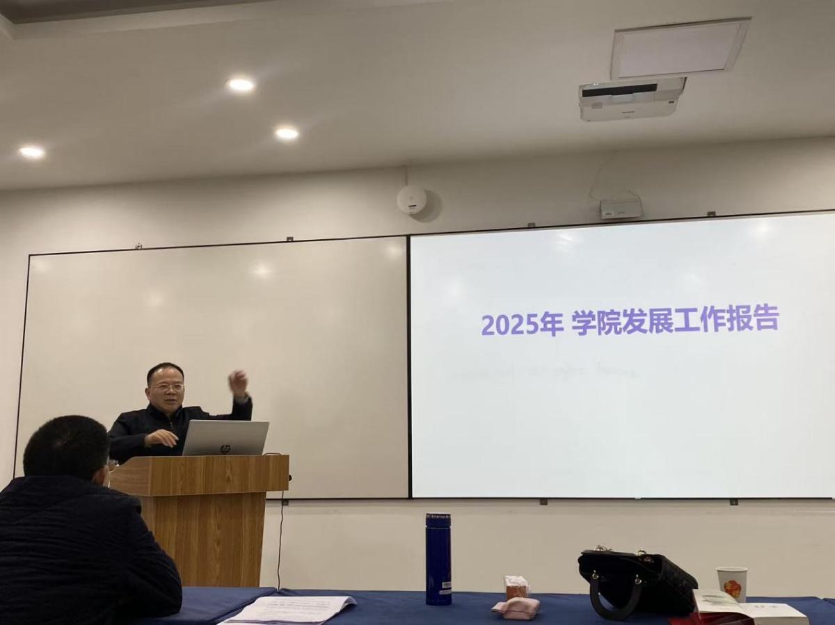 会议分为两个阶段进行。首先,院长姜孟就2025年学院工作报告和财务报告进行了详细阐述,介绍了学院在过去一年中取得的工作成果,深入分析了存在的问题,并对未来的发展方向进行了展望。姜院长还就学院经费的来源与支出进行了详细具体的说明,报告求真务实,用数据说话,确保了财务透明度。