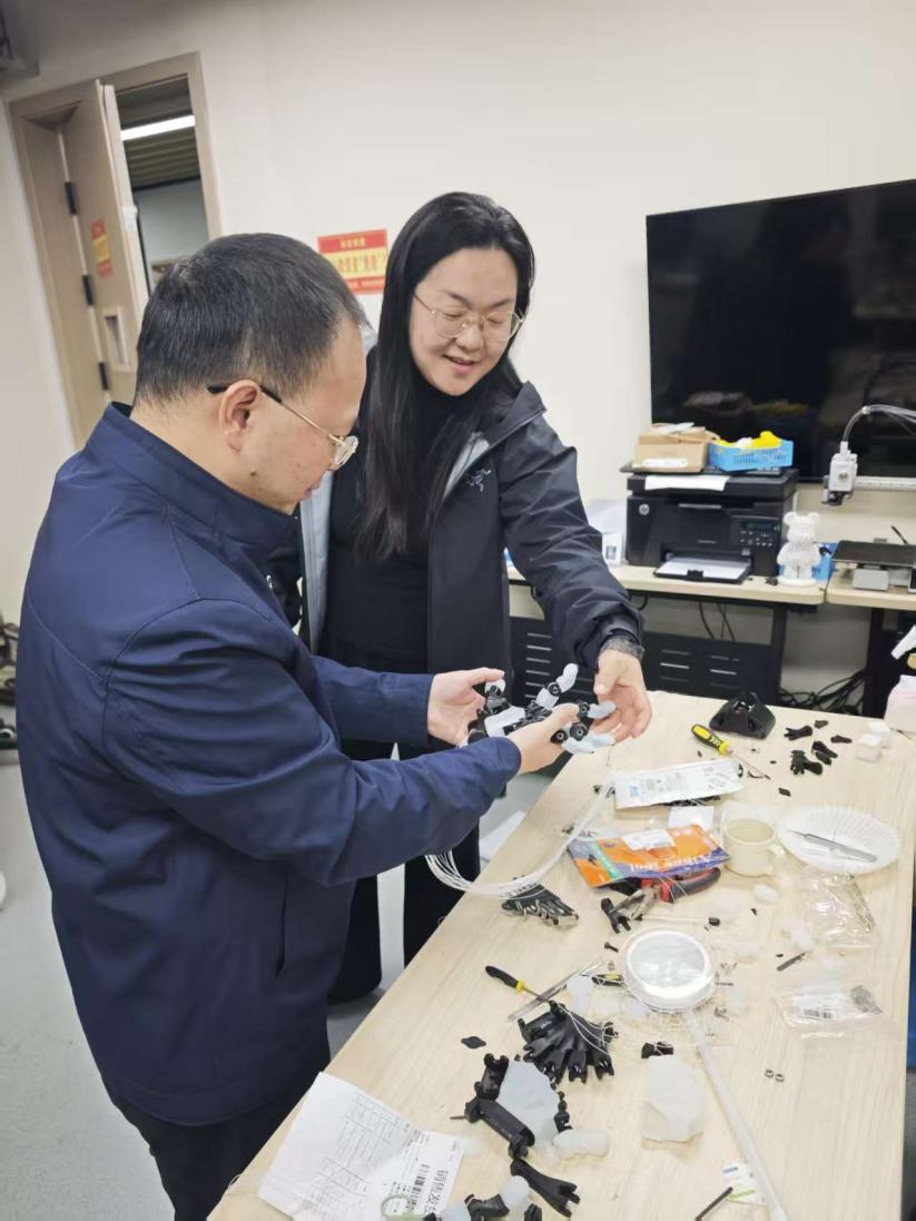 彭小燕教授带领姜孟院长一行先后参观了智能传动和控制技术国家地方联合工程研究中心、类脑计算与智能芯片重庆市重点实验室、智能传动和控制重庆市工程实验室、重庆市智能传动和控制技术技术创新中心等四个高水平科学研究和技术开发平台,体验了所研发的“基于边缘人工智能的机器嗅觉系统”、“智能嗅觉检测平台”、“基于MOS传感器阵列的气体检测平台”、“基于MEMS传感器阵列的工业气体浓度预测”、“用户白酒风味检测的智能感知系统”等前沿科技产品。